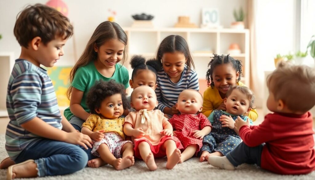 Baby dolls enhance emotional intelligence by enabling children to express feelings through role-play interactions. Kids learn empathy by caring for their dolls – feeding them, changing clothes, comforting them when upset. Research shows that children who engage in nurturing play demonstrate increased social awareness at ages 3-5. Playing with dolls helps kids process complex emotions like frustration, joy, sadness through safe pretend scenarios. Children practice conflict resolution by mediating doll disputes, setting boundaries during playtime, sharing toys with peers.